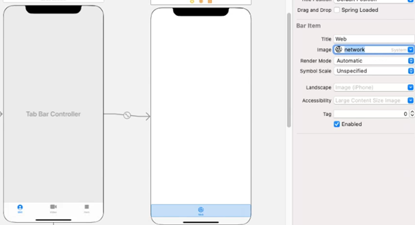 새로운 기능을 추가하기 위해 ViewController, Tab Bar Controller 연결