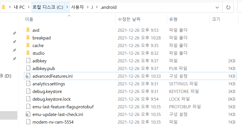 대부분 C:\Users\.android에 있을거라 예상한다
