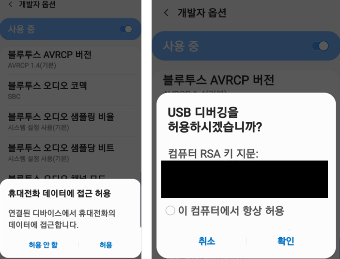 USB 디버깅 허용