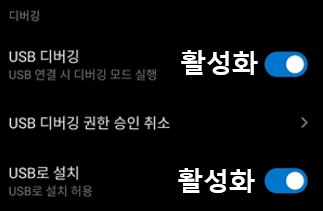 "USB 디버깅 사용"