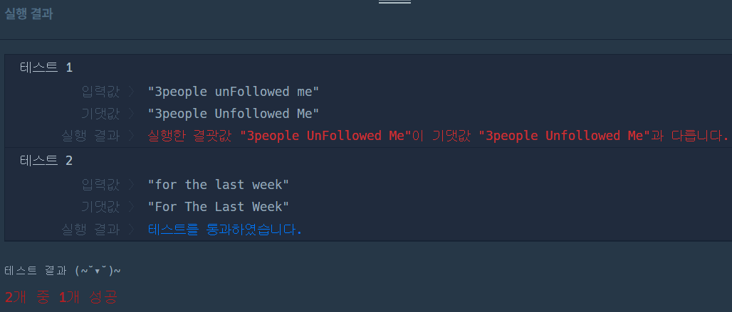 나머지 알파벳을 소문자로 변환해주지 않기 때문에 실패,,